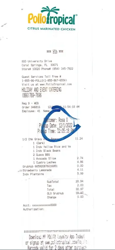Read full complaintDelivery and pollo tropical ap