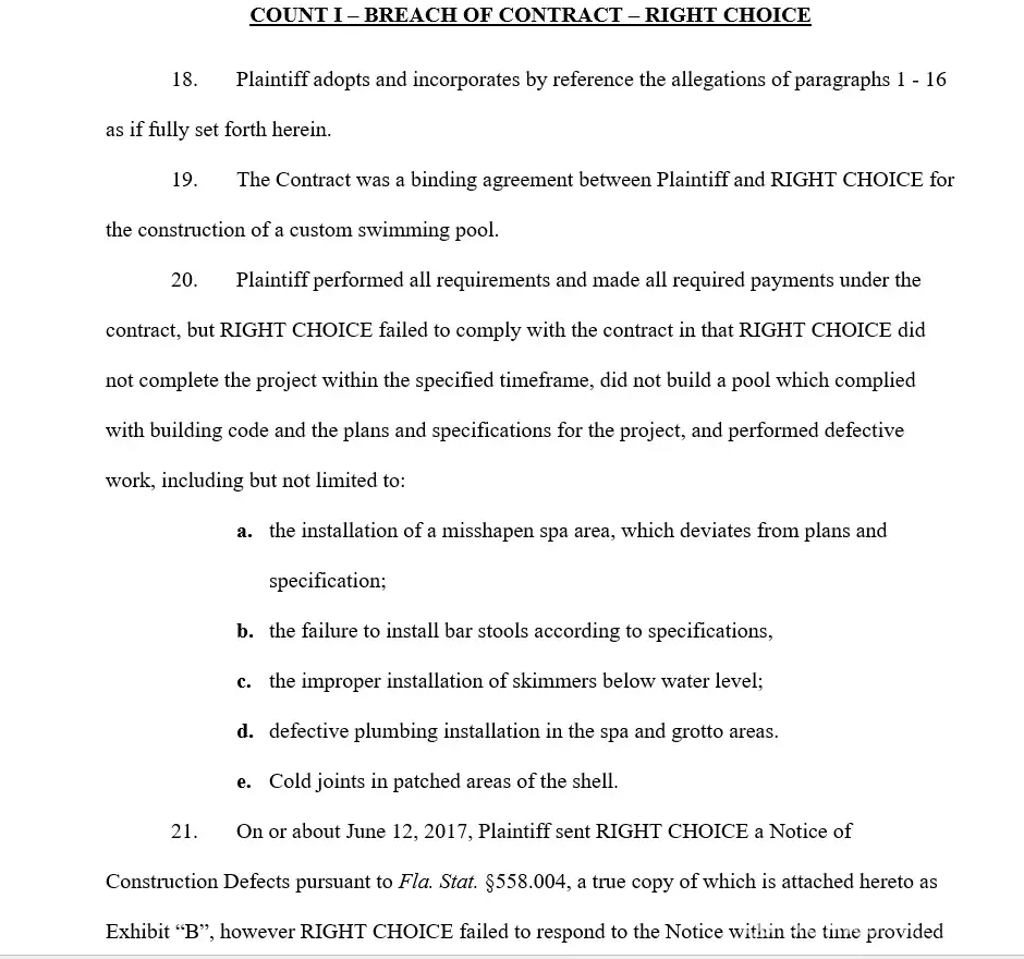 Update.. Rcp brought back their main facebook (right choice pools & spas, inc.) for some reason recently, take a look for all documents and pictures. Update 12/13/17... Another lawsuit from another victim in broward county case number: cace17022438. Several this year alone! I suggest all right choice pools & spas victims post legitimate grievances here on...