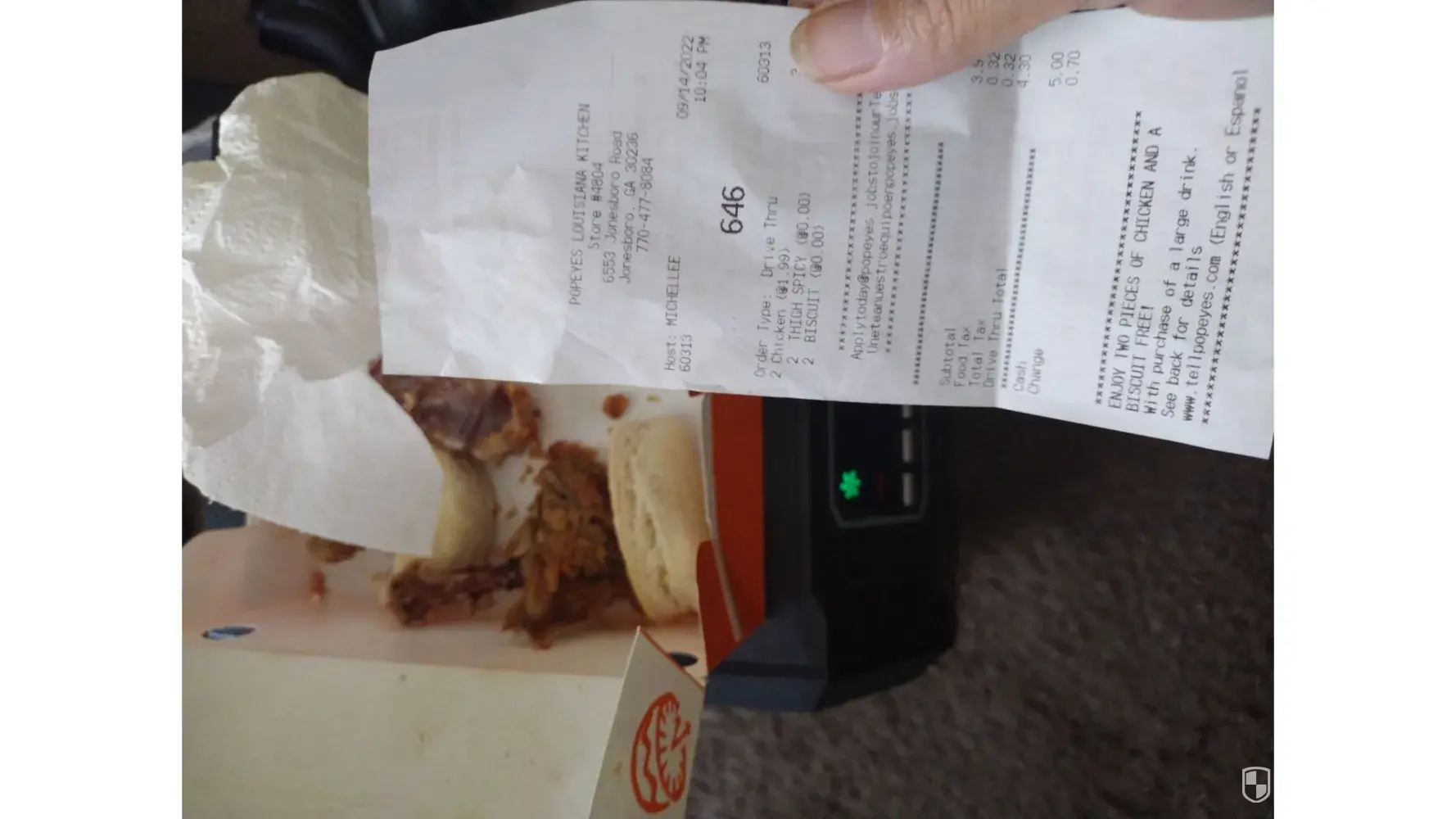 I just got home from the Post Falls, ID location and what will be my last order at Popeyes. Restaurant is filthy, employees are filthy and rude, more concerned with texting and joking with each other than taking care of customers. And they got the order wrong AGAIN! Why ask me mild or spicy if you’re just gonna give me what you want to anyway? I had a coupon for a free 2pc w/ biscuit if buying a large drink. I also added a small side. Almost $9 for a drink and a side? Your food isn’t that good.
