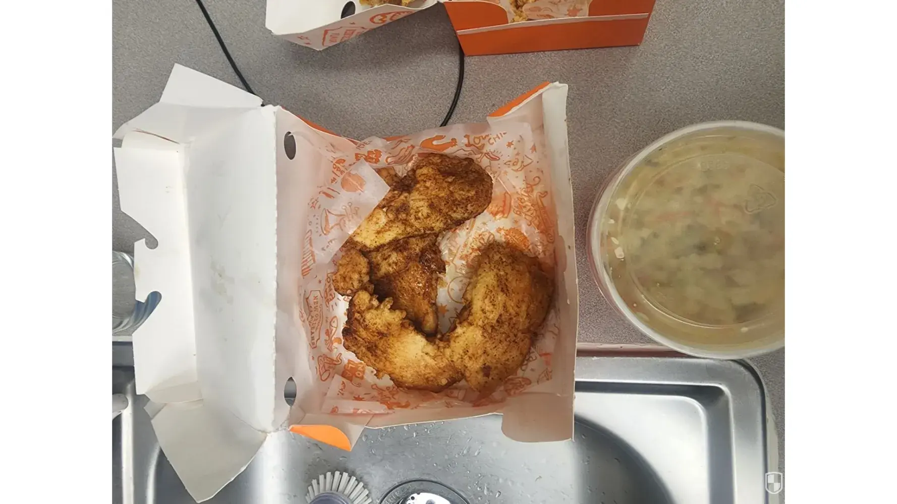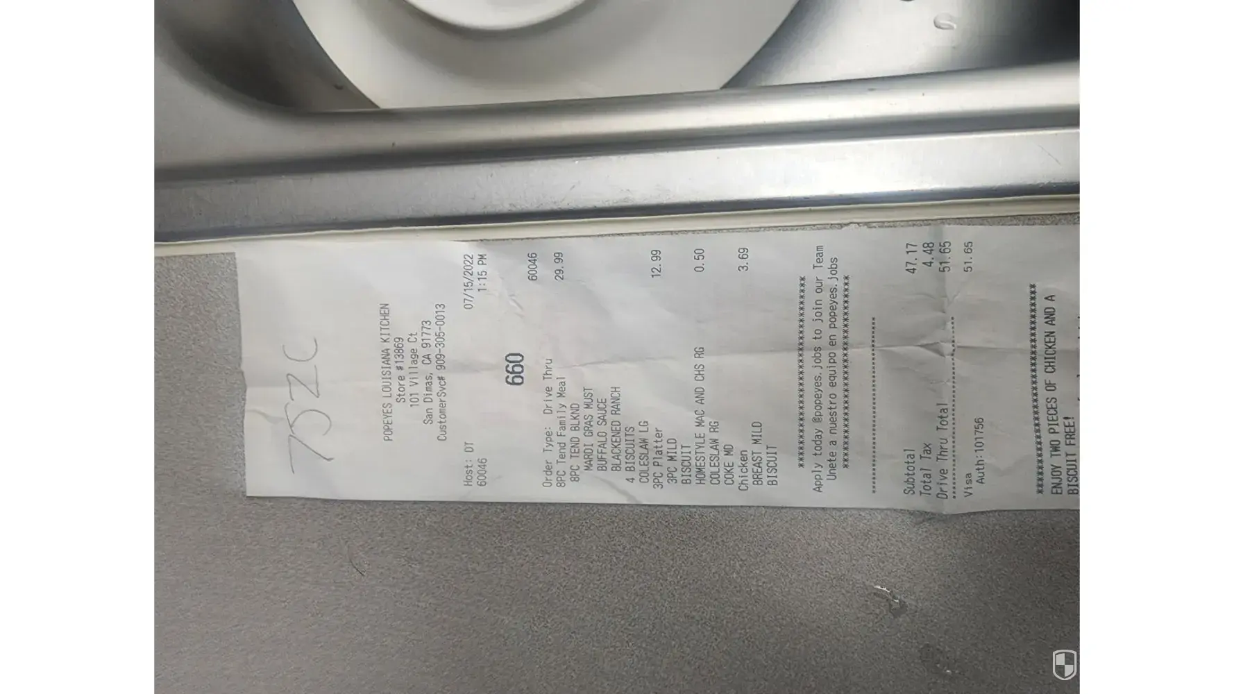My husband and I normally don't eat out much for this very reason, we decided to treat ourselves with Popeyes and bought a chicken tender meal, with coleslaw, fries, mash potatoes, biscuit.