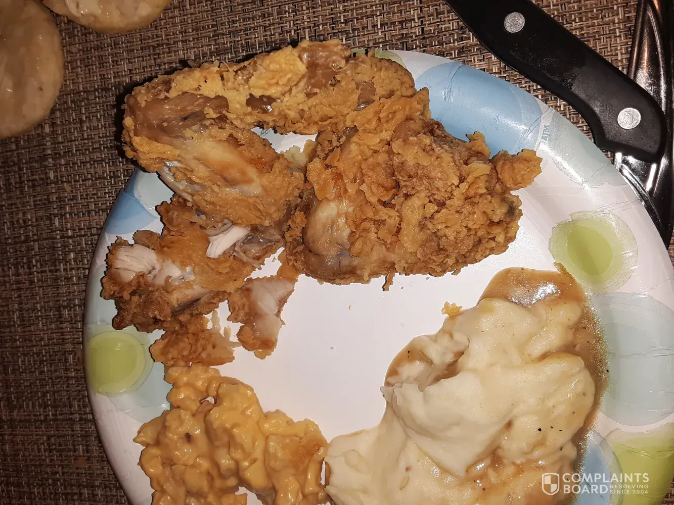 Read full complaintChicken, mashed potatoes, macaroni and cheese