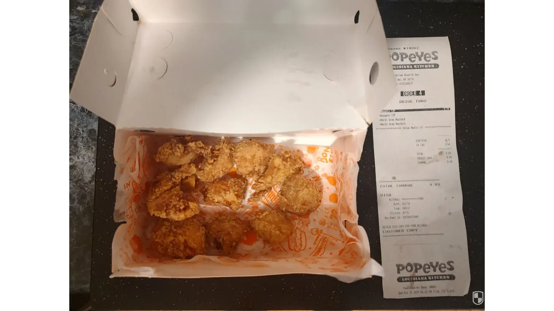 One was for $24.83 at Popeyes.