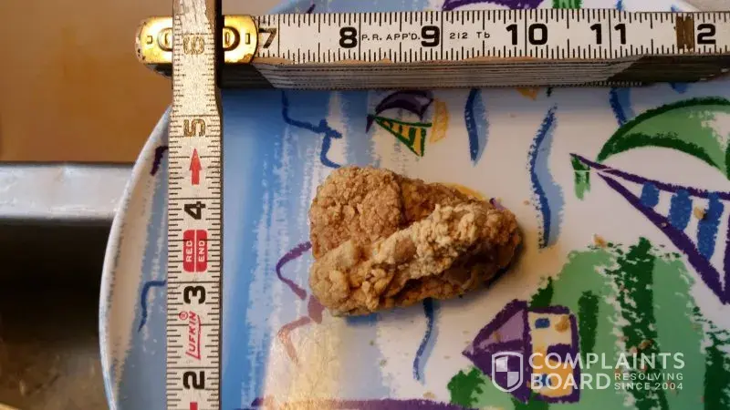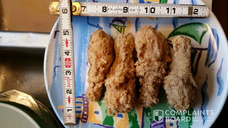 You are pathetic, do you take a measuring tape everywhere? Also why did you take the pictures after you ate part of the chicken and claim it was resold?