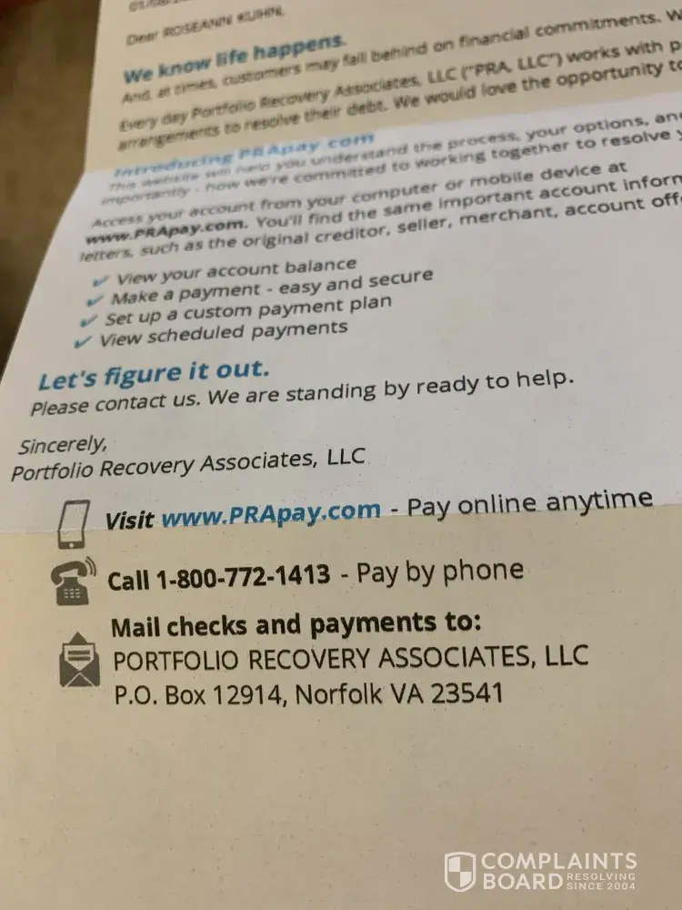 Portfolio Recovery Associates complaints: history and resolution overview