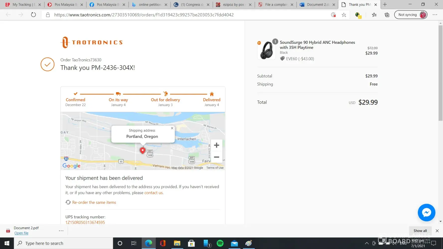 I have attached some snapshot of the complaint, product tracking purchase, etc for your reference.