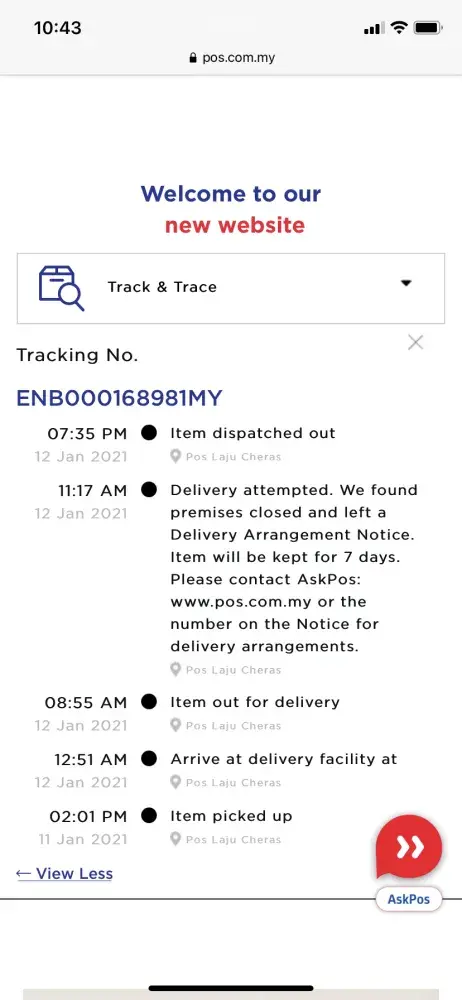 I can't believe this pos laju can be this bad, I don't wanna use poslaju cause I heard about bad thing, but I have no choice to use only one time, and my item goes no news, customer service are not available, ask online rabot wasn't helpful at all! My first time ever met this kind of situation, and only in pos laju! Don't use their couriers! Ruin us and waste time!