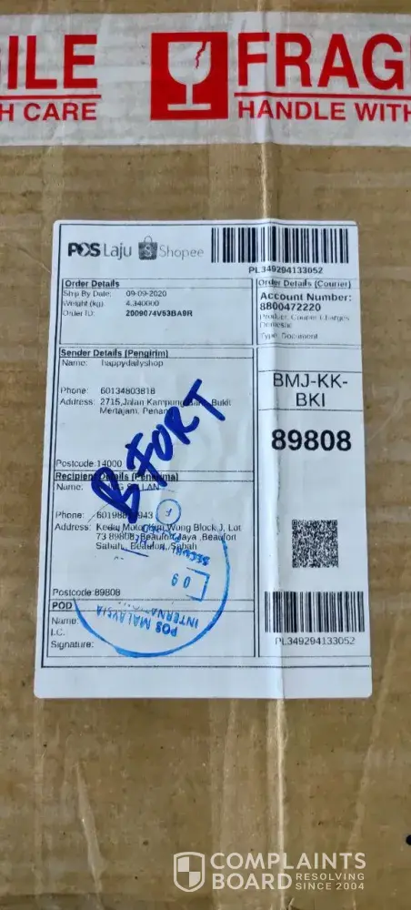 I am complaint about pos laju sender person