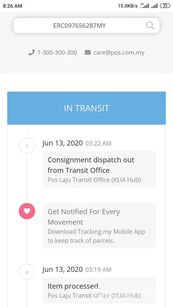 Even though, other times poslaju does ship fast but somehow now, it's stuck at KLIA Hub for days?.