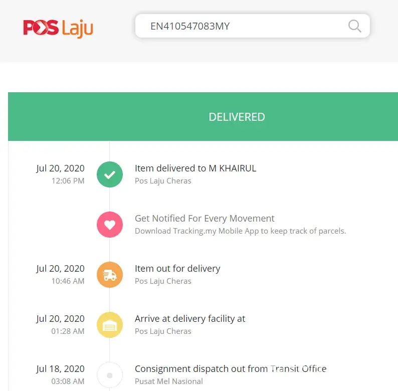 Powered by https://www.tracking.my