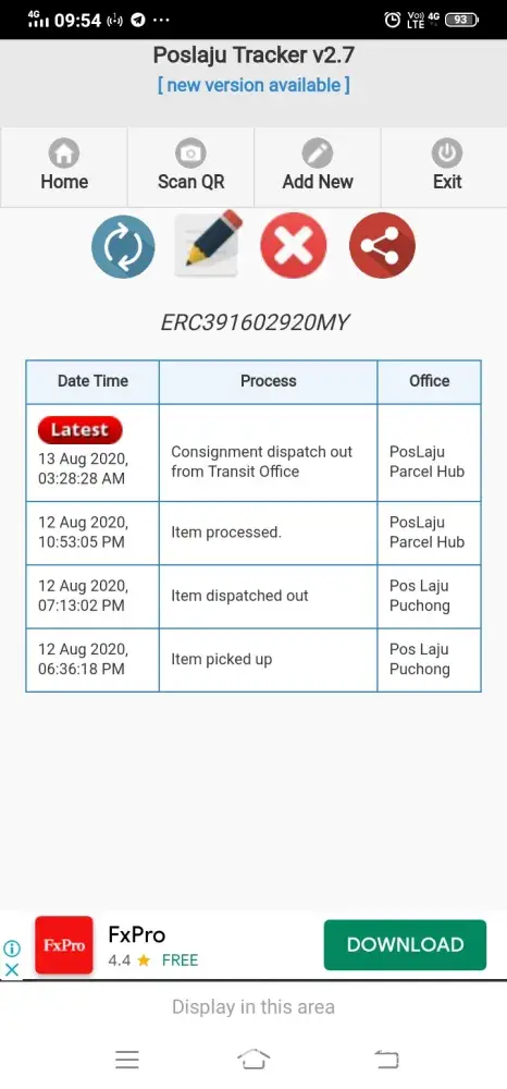 Parcel saya tak di update sejak 30.7.2020