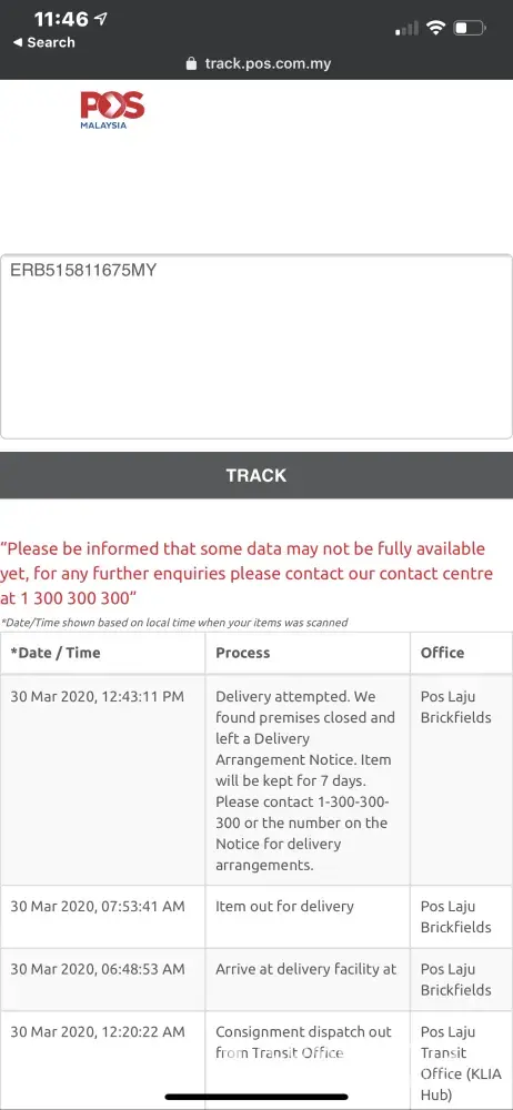 I even went to pusat mel nasional to try to pick up my item but none staff help me to search for it. Plus the mel nasional itself didn't provide any phone number.