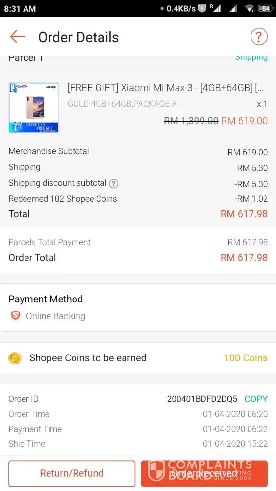 Saya telah membuat pembelian secara talian melalui shoppe, berdasarkan kemaskini penghantaran yang telah dimaklumkan, barang saya telahpun berjaya "shipped out" pada tanggal 05.04.2020.