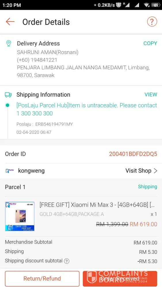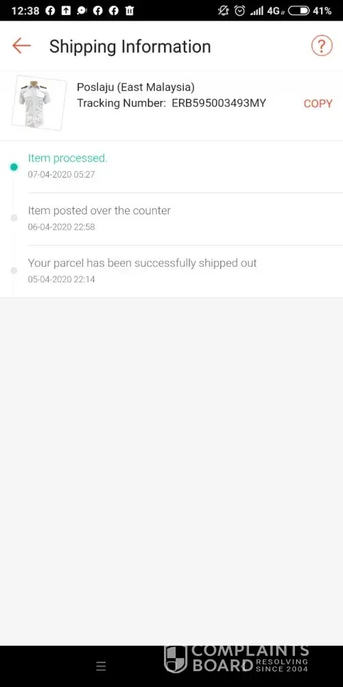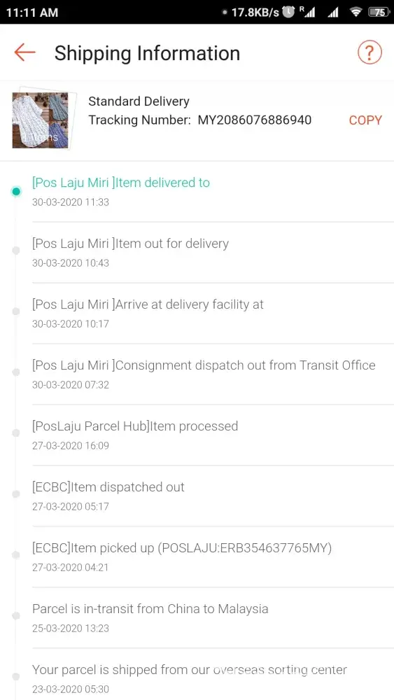 I'd buy an iphone casing since Sunday (29/03/20) and the items has deliver to Poslaju Batu Caves. I checked my tracking number ERB526585042MY and still ‘on process'. STILL ON PROCESS until now, Friday (03/04/20). Why it takes almost a week to process the parchel? I also call customer service contact but unfortunately, the number doesn't exist, like heck? Ur officer should determind and update your system & communication. Please have a check immediately on my track id because its been a week tho. Thanks