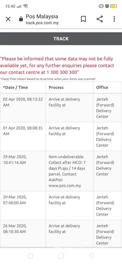 Tapi sampai sekarang (8/04/2020) barang masih belum saya terima tapi dah 4 hari di poslaju seremban