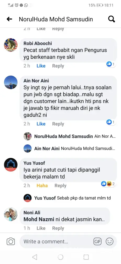 Seperti merujuk perkara diatas, sy ingin membuat aduan berkaitan 2 orang staff Di kaunter cawangan seperti diatas atas kelakuan yg kurang ajar serta me layan customer dengan cara acuh x acuh serta suka memperli customer Jika customer bertanya & tidak tau sesuatu perkara.