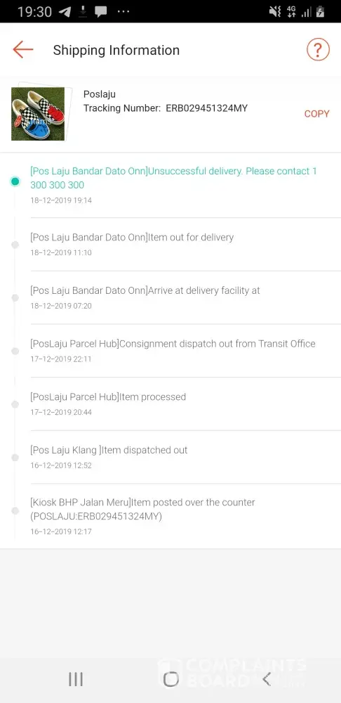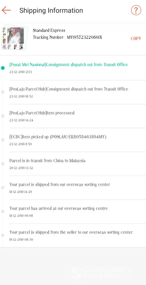 kakitangan bagitahu memang pada 19 Dis delivery boy tak sampai ke alamat saya pun..