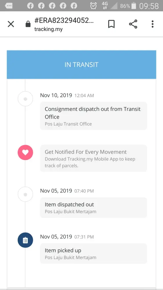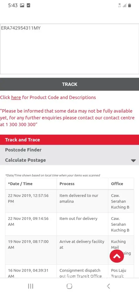 Another case is, I sent out items to my customer, and for almost a month, I didnt receive the item. Poslaju your courier is bringing a lot of problem to my business.
