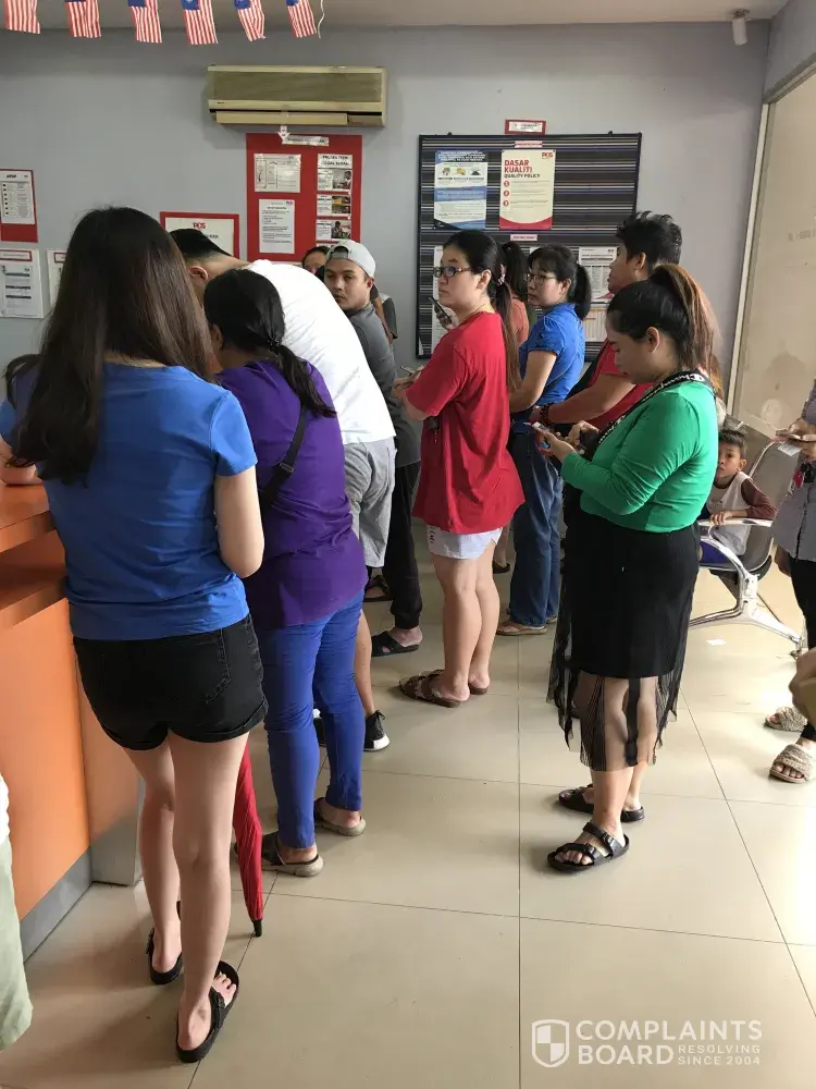 2. No proper waiting zone. Customers huddle around counters with inpatient eyes at the poor officer on duty. Obstructing and causing confusion to the queue.