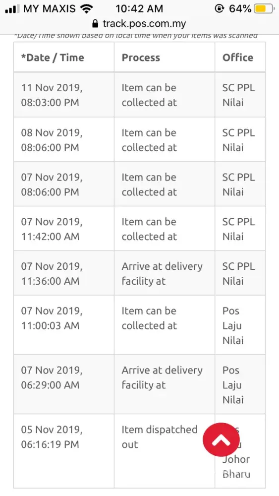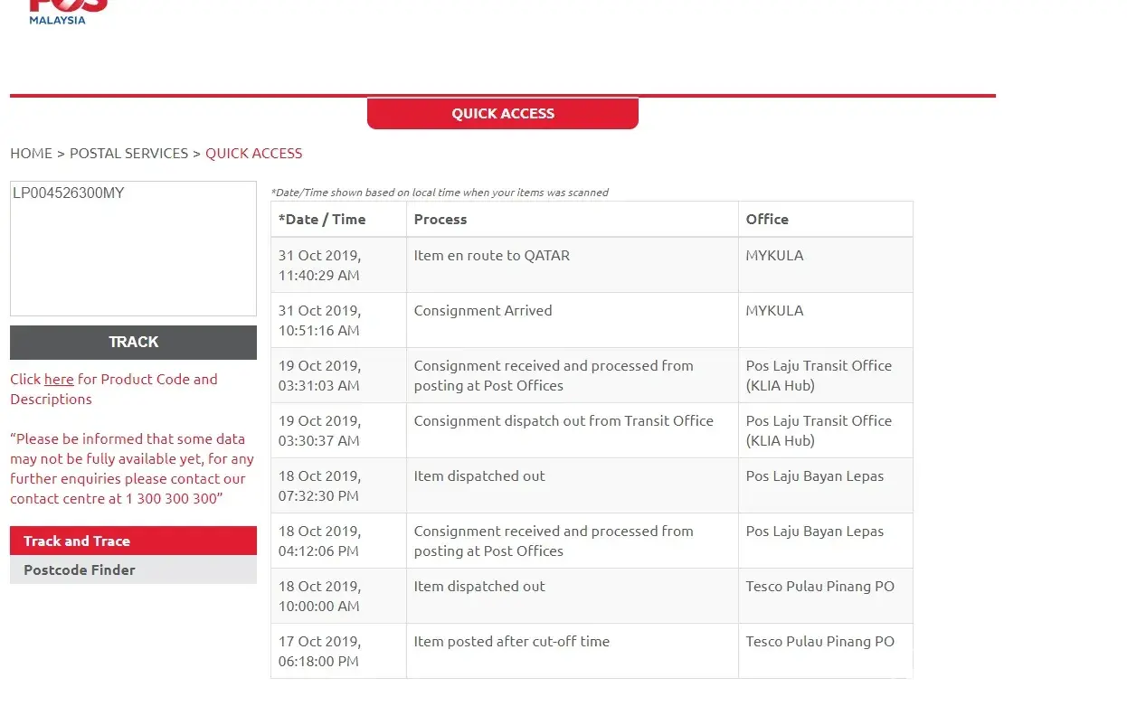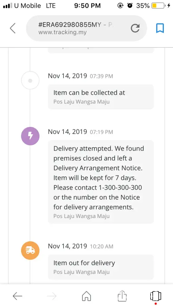 3. Failure to update the said transcript in the tracking process (for me to self collect). I only received it last minute on the day pos Melawati decided to return the post