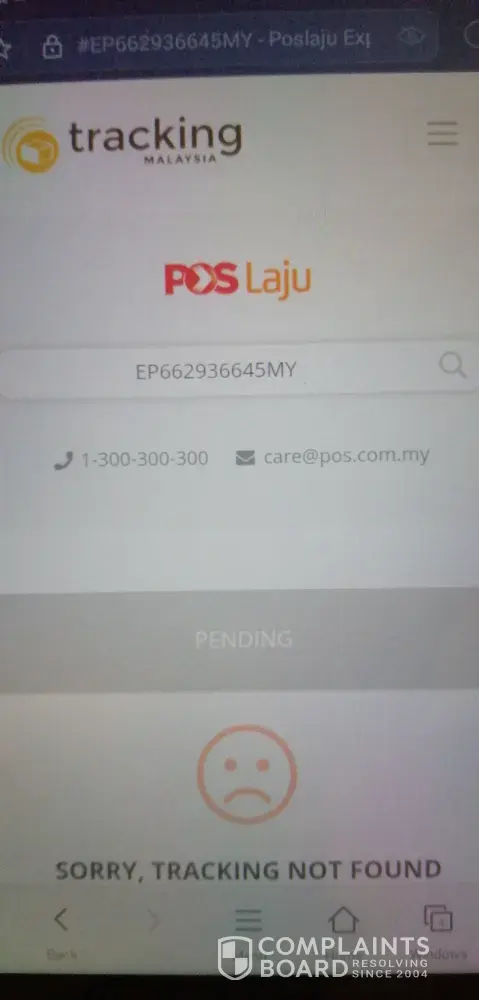 Setelah mengetahui hal tersebut, saya telah menghantar gambar barangan tersebut kepada pos laju tersebut tetapi pihak pos laju tersebut mengatakan bahawa barangan saya tidak ditemui..saya minta pihak tuan untuk mencari semula barangan saya kerana tidak mungkin barangan tersebut keluar atau hilang dari mana2 pejabat pos..saya harap pihak tuan bole mempertimbangkan semula