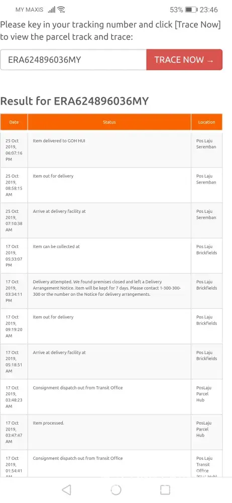 Called Pos Laju Hotline everyday but no one bother to answer the phone. And then, pos laju tracking system was down for a week. Anyhow, I waited patiently.