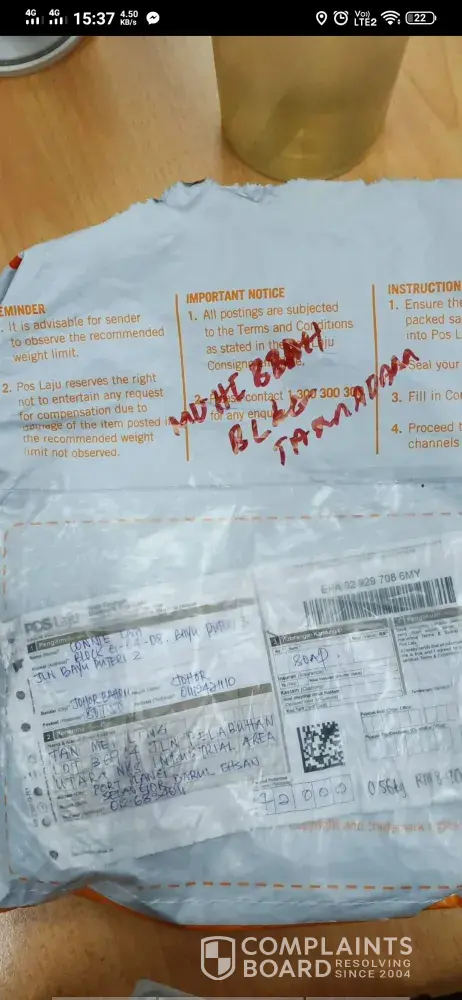 pos malaysia — posmen tidak call (pengirim/penerima) dan tidak tinggalkan "notice" ketika barang tidak sampai ke tangan penerima