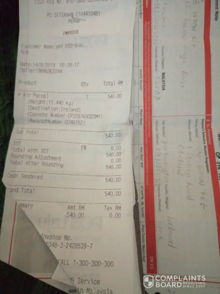 Refer to above reference number, I am very disappointed with Pos Laju Service.
