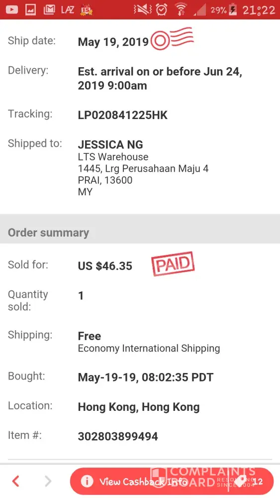Salam saya nurul amalina. Sy mohon rungutan berkaitan dengan parcel saya . Tracking no. :ERA119017629MY. Mengikut rekod barang saya sepatutnya sudah sampai ke rumah pada 30/5/2019 bersamaan hari khamis jam 4 ptg dah diterima atas nama saya nurul amalina ic no [protected]. Tetapi untuk pengetahuan pihak pos laju saya langsung tidak menerima sebarang parcel saya..pintu rumah jgk tidak diketuk n tiada sebarang msg mengatakan barang sudah hantar. Kenapa dalam rekod sy dah terima barang. Terlalu byk isu dari pos laju. Mohon ambik tindakan dari pos laju. Jangan senang2 aniaya kami. Sukati ckp barang dah smpai senangkan barang langsung tidak di hantar. Untuk pengetahun pos laju semalam 31/5/2019 hari jumaat ptg sy sudah pun telefon pos laju berkaitan isu ini tp tiada sebarang tindakan..mohon sangat2 pihak laju ambik tindakan segera. Di sini saya sertakan brg yg sepatutnya sy terima. Terima kasih.