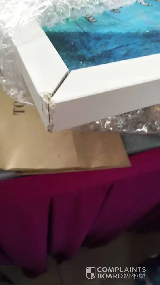 I'd like to make a complain on my artwork posted to Selangor (as stated in the poslaju form). The frame was badly damaged /cracked might be due to mishandling of your staff (refer photos attached)