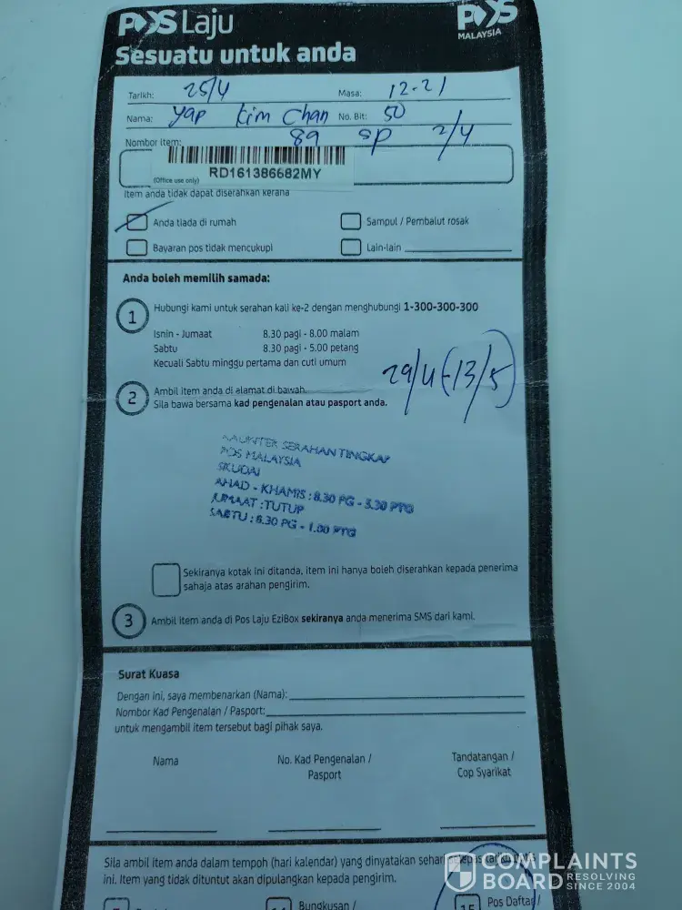 Oh POS MALAYSIA dengarlah suara pelanggan kamu ini😑