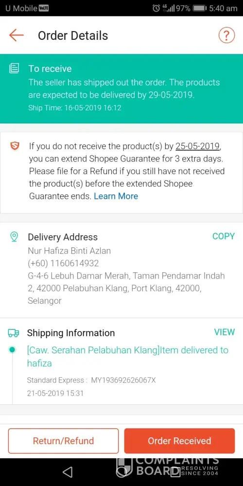 The online seller sent my order via pos laju on 8th May 2019, but until today 15th March, I still have not received my package. I could not track the package on Poslaju Track & Trace online, it shows no record. I have called Poslaju Careline several times and was told they are waiting for response from the dispatch centre. Today I called again and was told that it has now arrived at the destination's Processing Centre but since the due date is only 17th May, it will only be delivered before then! Again, I was told there is a due date and it is not due yet, so I am told to wait. Only if I dont receive it by the due date, then I should call again or ask for a refund.