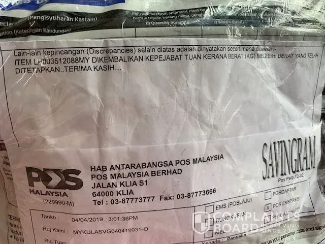 barang di pos di PosLaju Puchong pada 08 April 2019.