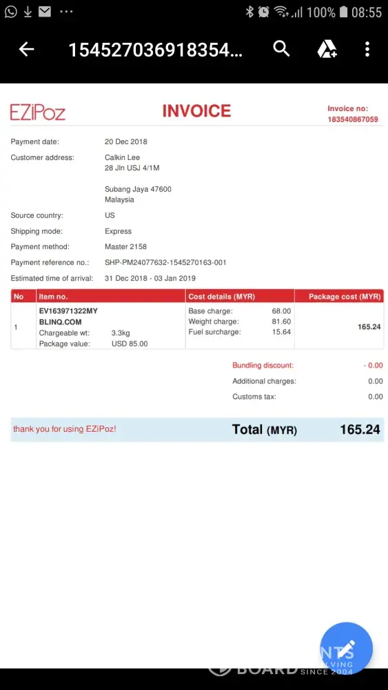 thank you for using EZiPoz! Total (MYR) 165.24