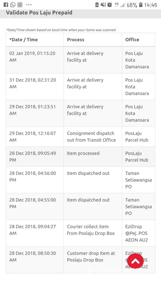 So 26-12-2018 I go to the puchong Pos office they tell me have to check by the incarge person need to wait 27th they will call me back. I was like what the hell?!
