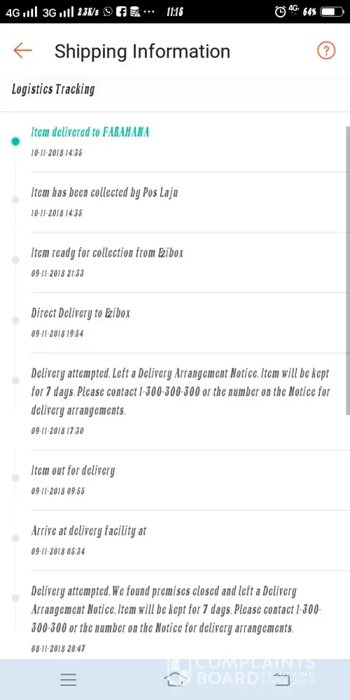 I have been waiting the whole day on the 21st Dec 2018 for my parcel to arrive. It stated item out for delivery at 10am that day so I waited. But when I tracked my parcel, it stated "attempted delivery...unsuccessful delivery...premise closed.." I was there at home waiting the whole time. No call or notification from posman ever received. So I called customer service, they told me to pick it up at Ezibox. Luckily the parcel is put in that Ezibox on the same day. However, yesterday (22nd Dec 2018) it happened again, but with a different parcel. I tracked my parcel it stated item out for delivery at 10am, by 12.58pm it stated "unsucessful delivery..." I was waiting at home for my parcel to be delivered, no call or notification whatsoever received. Please do your job properly. I wonder if there is ever an attempt made to deliver the parcel to me 🤔. Please improve your service. This is a let down to customers.