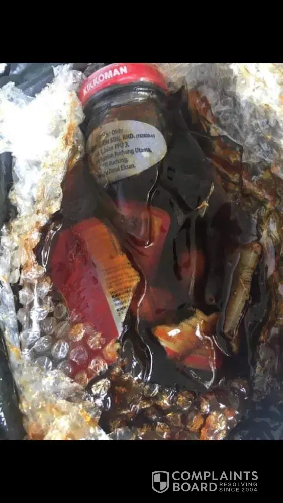 21 Nov 2018 i courier at pos muar bukit pasir to my customer home at taman malin jaya malacca...when 22 nov 2018 she received the teriyaki Sauce...already broken ...can't try and can't eat...our courier bag also have remind this bag need to hand for care inside have glasses...must be careful...but...so i hope poslaju company can compensate for this case as soon as possible...Thank you...