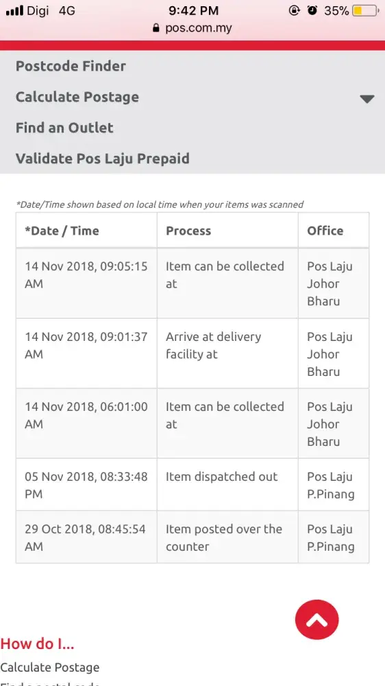 Barang saya dah ada dekat pos laju shah alam dari minggu lepas, on 15th November. Padahal dari Puchong je kot. My friend kata diorang akan hold one day. which is barang harini sampai, esok akan delivered. But takpe la, barang saya sampai dari hari khamis. And i guess hari jumaat or sabtu akan dapat. But tak dapat. Its okay sebab i tahu sabtu weekend. Then until today, barang saya masih dekat pos laju? Last week, dua parcel saya dapat on time. And i check both tracking, item out for delivery on 10am macamtu. Tp harini, i check my tracking. Macam freezing camtu je sebab masih sama macam jumaat lepas. Tak keluar keluar dari pos laju. Please, I dont know where to collect my parcel
