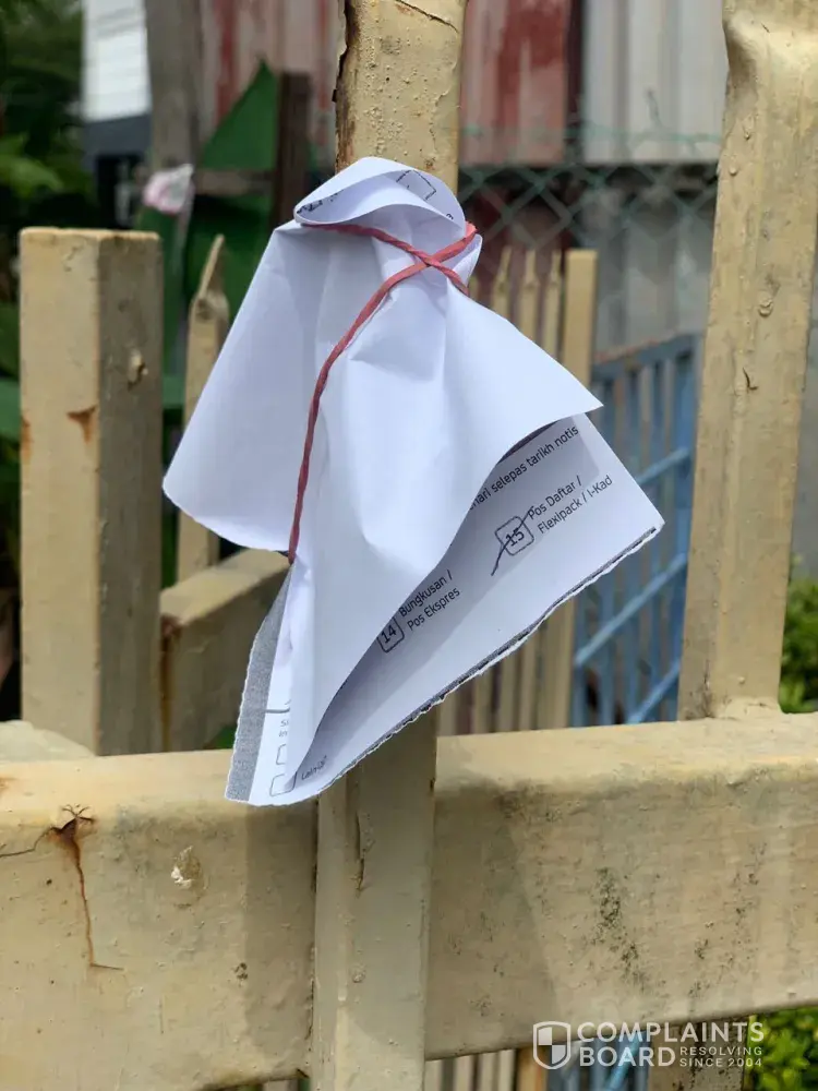 As what shown in pictures, it is a registered post letter which basically needs my identification number to receive it but the problem here is the courier didn't even knock on my door or ring the bell. He just left the notice there on my fence. To say that i don't have any letter box that absolutely insane i have it nearby the ring bell but the courier never bother to go up the hill to my house because my house is on the hill. How would i know if they left it on the fence which basically down the hill. Please solve this issue! I've complained so many times about this but seems like no action has been taken!