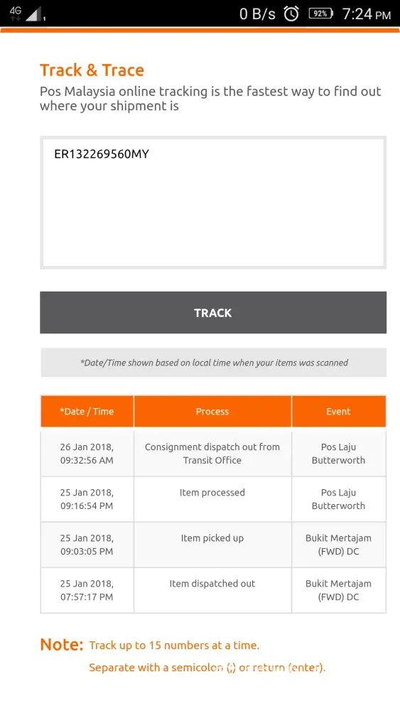We paid a lot for the delivery (for fast delivery and tracking of the parcel) from Japan and the parcel was alright & on track all the way from Japan... except until it reach Subang Jaya.