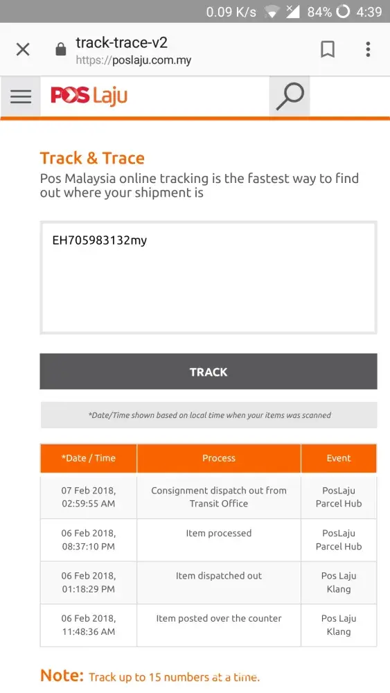 Barang dah delay seminggu..sepatutnya sampai dah sbb pos dr semenanjung ke kuching, what took so long? Bila check tracking number still said 'consignment dispatched out from transit office' dari 3 feb hari tu lg sampai skrg x update pun. Come on jgn ckp alasannya sbb kat kuching skrg selalu hujan lebat 24 jam so x blh nk hntr brg. Tlg la update sikit, jgn slow sgt, supposed to receive 3 consignment by today