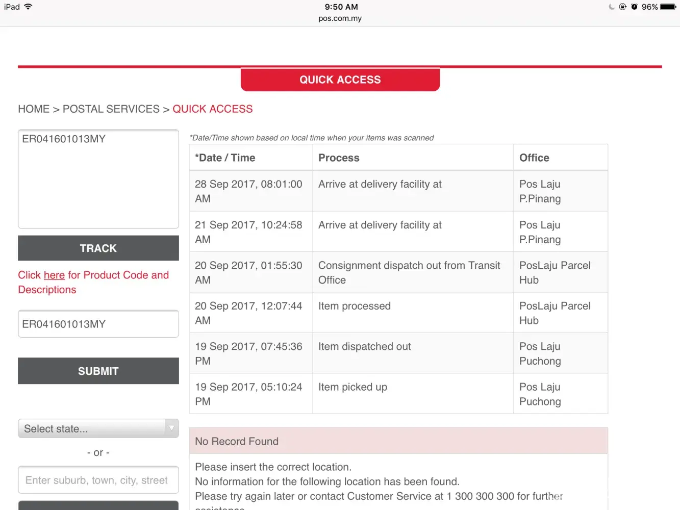 I have made a few trips down to the kuching poslaju/parcel office but still cannot trace.