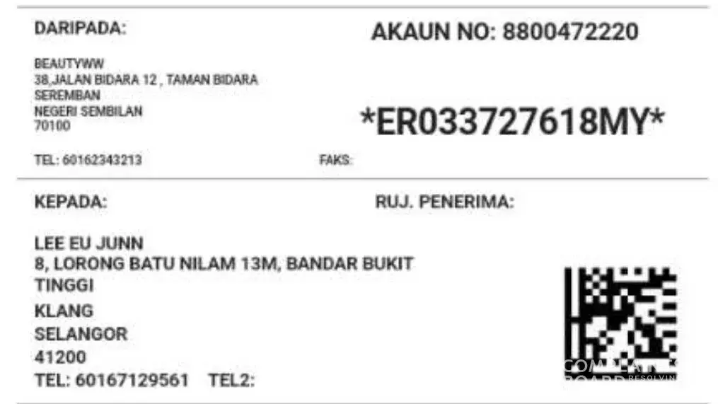 barang tidak sampai ke alamat. layanan kaunter 8 amay biadab