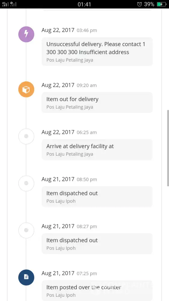 akan tetapi kenapa dalam sistem 29 Aug 2017 baru sampai Pej. Pos Petaling Jaya dan 30 Hb Aug masih di Shah Alam.