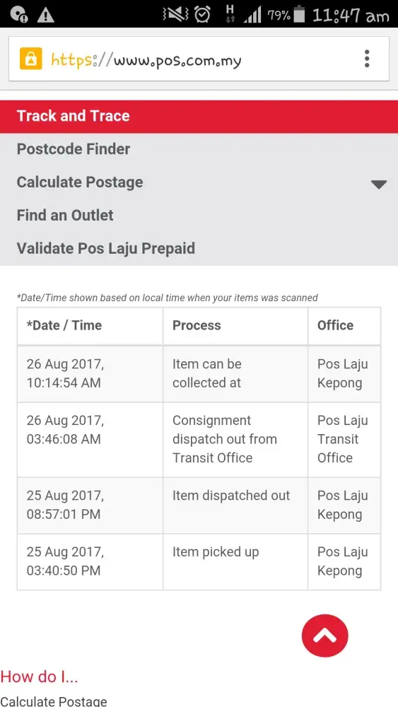 2. Pos laju muar are getting worst day by day as my item already at the pos laju but they didn't delivery it to me and they delivery it too late.