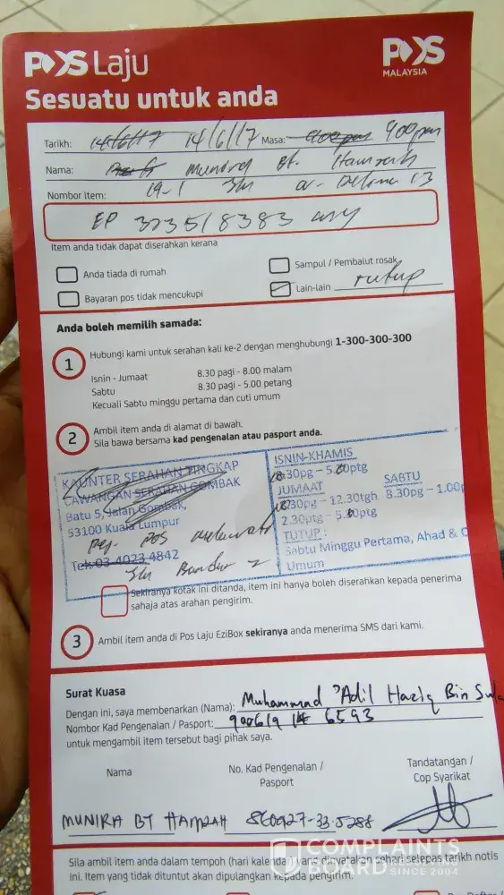 Read full complaint and 4 commentsposlaju malaysia