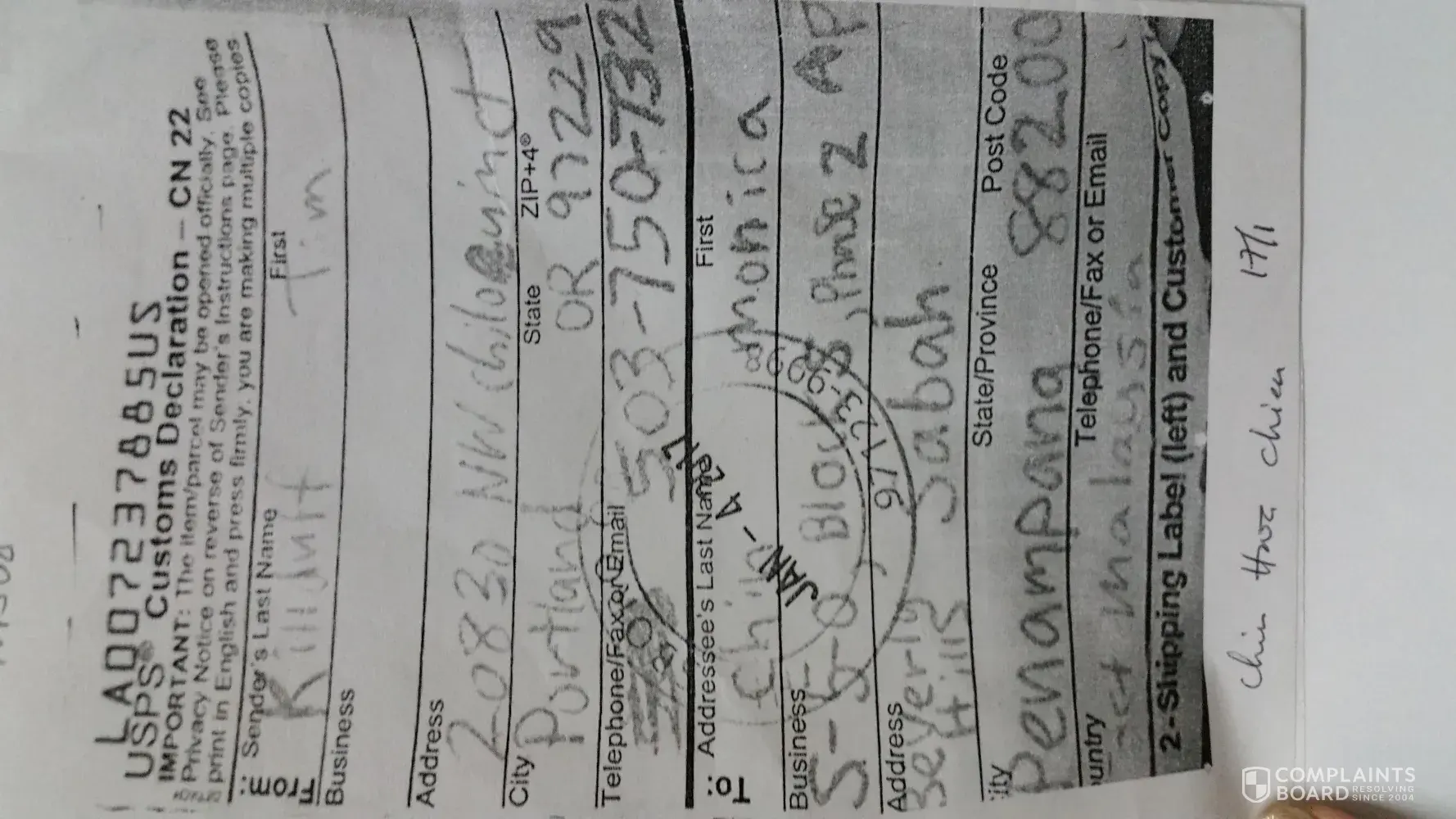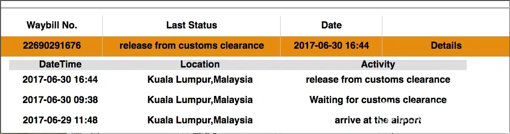 This complain is resulted from the tracking no. Above.