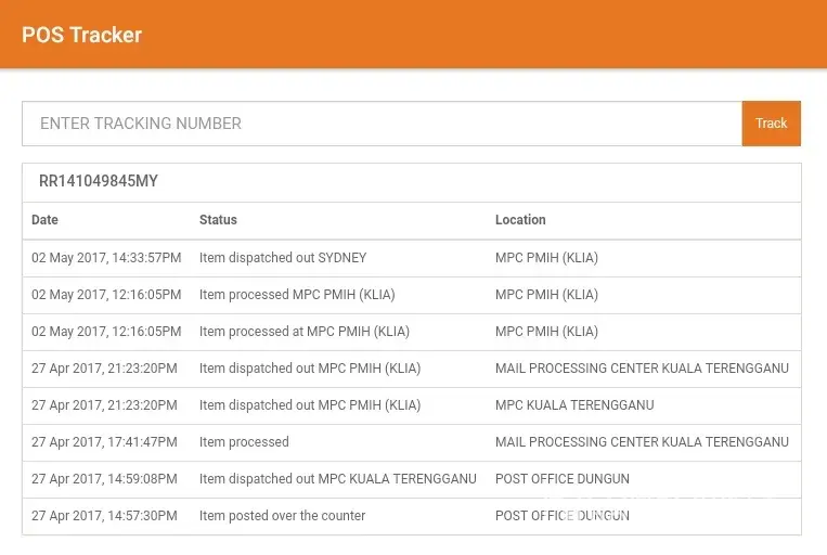 Event 2: Happened yesterday 6/6/17. Tracking no. EP360468920MY.