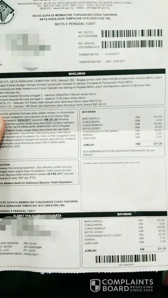 I'm Nelyza Mohd Paiz. Recently I received a notice from Majlis Daerah Kuala Langat on 6 June 2017. To my surprise, the notice date is on 1 March 2017 . I even checked with the Majlis Daerah, and they said it must be your postman sending it late. By right I shall received at least a week after. But this is too much, I only received after 3 months. I totally could not accept this as it is regarding tax assessment. I am dissapointed with your service. For your information, I stayed somewhere in Taman Bentara, Teluk Panglima Garang for about a year already. There is no such things your postman could not find my address. As a desirable resolution, I would like you to pay the outstanding tax to MDKL. And also i need your further explanation with a concrete reason why this could happened.