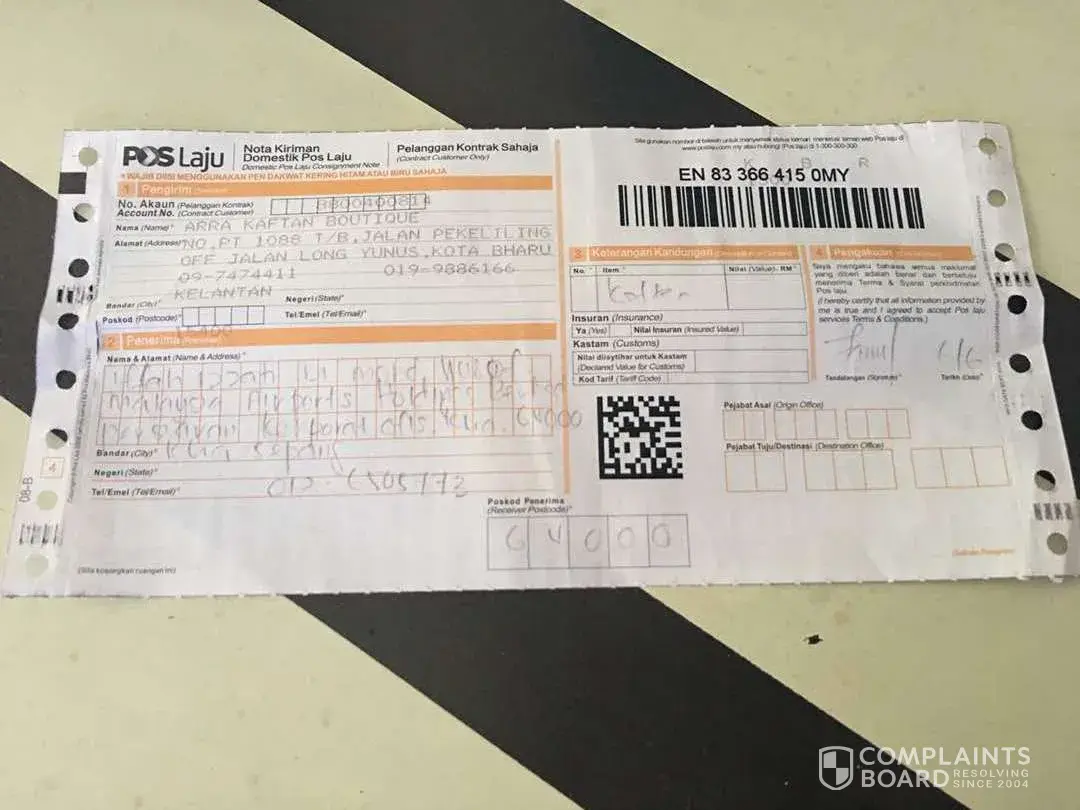 Eventually, ms yuni from balakong branch who has picked up my call this morning and I was told that my parcel were lost! So, it means that there will be no one follow up until customer call up to check the status?! After all, I was informed to fill in "borang maklumbalas pelanggan" with providing an invoice/receipt or there is nothing could be done about my problem without the receipt. That was the most ridiculous part! So you are meaning that if we are sending the package in between our friend or family must be attach with receipt or we can't entitle for any compensation or there will be no responsible taken from your side?! I truly feel that this response is very unfair because the fault/lost caused by pos laju not from customer! And why we paid for the delivery fees?!