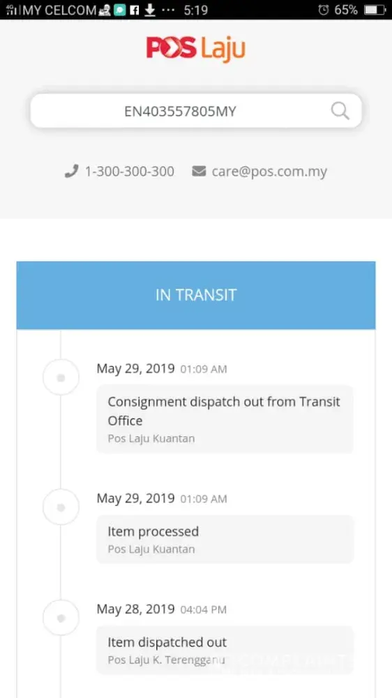 No track En403557805my pos ke kelantan tapi semalam duk terengganu ni pagi ni duk kuantan plak rajin sngt bwak p jalan2..cust nk cepat tak pasal2 sy di persalahkan..tolong selesaikan dengan segera ye
